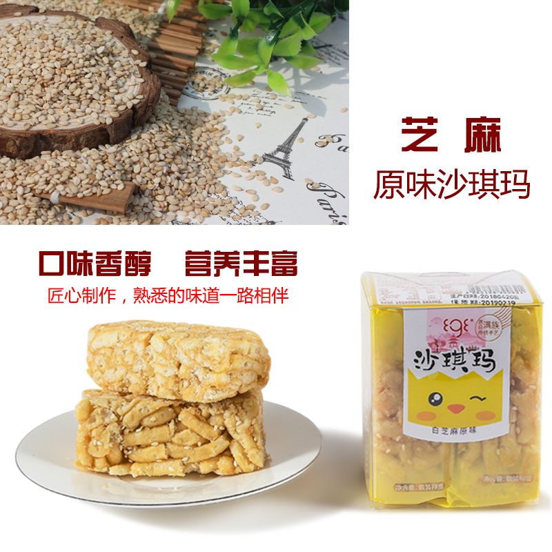 白芝麻原味沙琪瑪、白芝麻黑糖味沙琪瑪、紅棗枸杞味沙琪瑪、