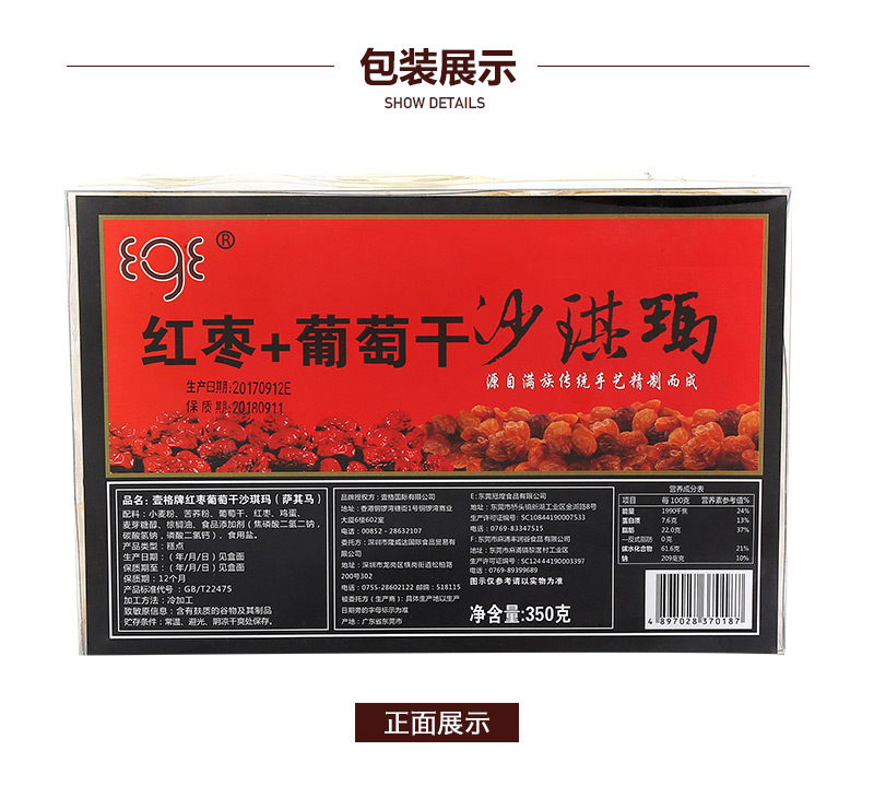 小麥粉、苦蕎粉、葡萄干、紅棗、雞蛋、麥芽糖醇、棕櫚油、食品添加劑(焦磷酸二氫二鈉,碳酸氫鈉,磷酸二氫鈣)、食用鹽