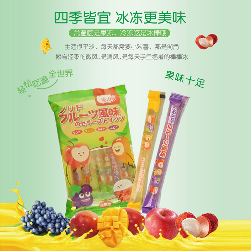 水、白砂糖、卡拉膠、芒果汁、荔枝汁、蘋果汁、葡萄汁、檸檬酸、食用香精
