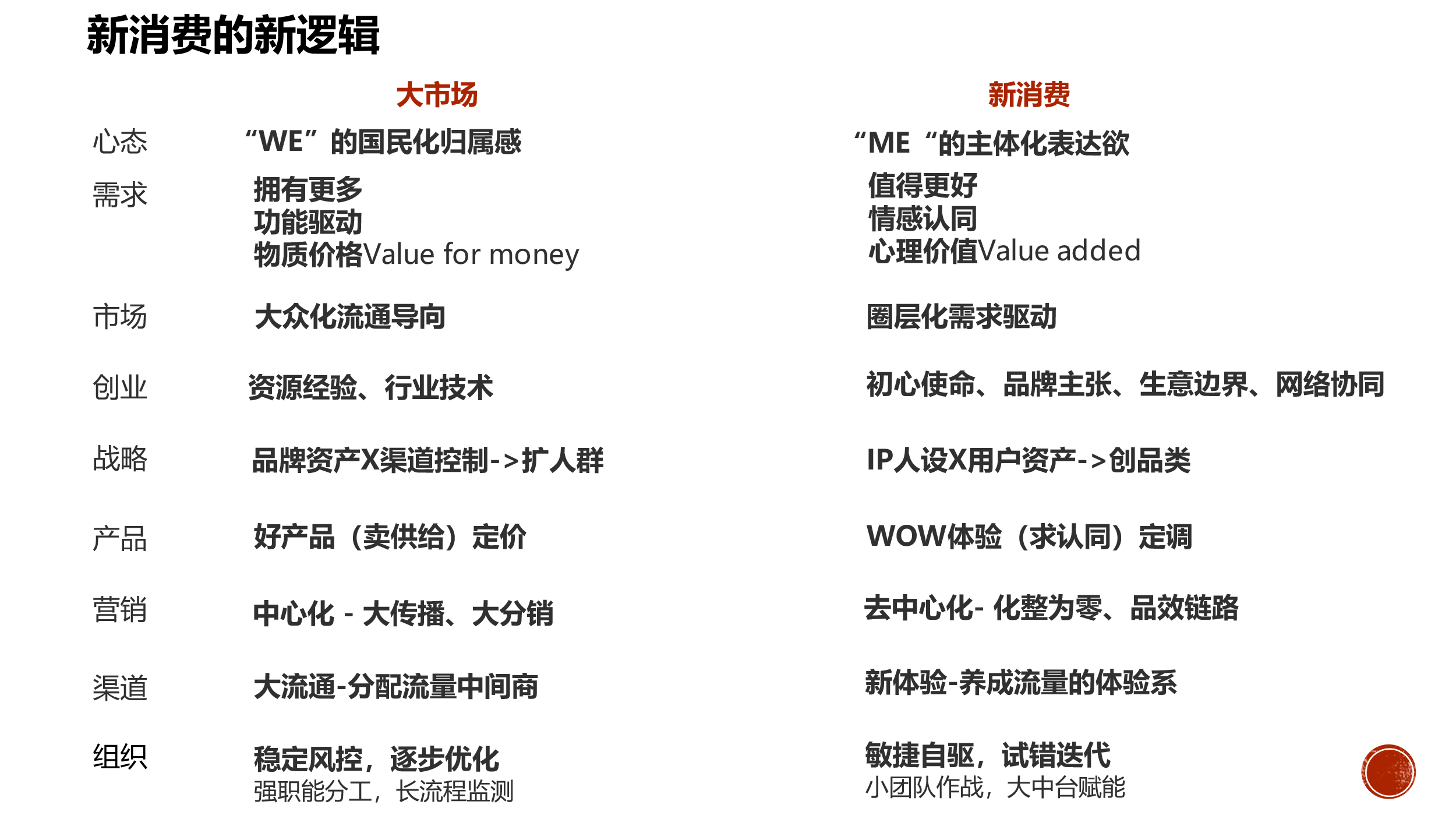 “大市場(chǎng)和新消費(fèi)的商業(yè)邏輯不同,也決定了營銷模式的不同。”魯秀瓊總結(jié)道。